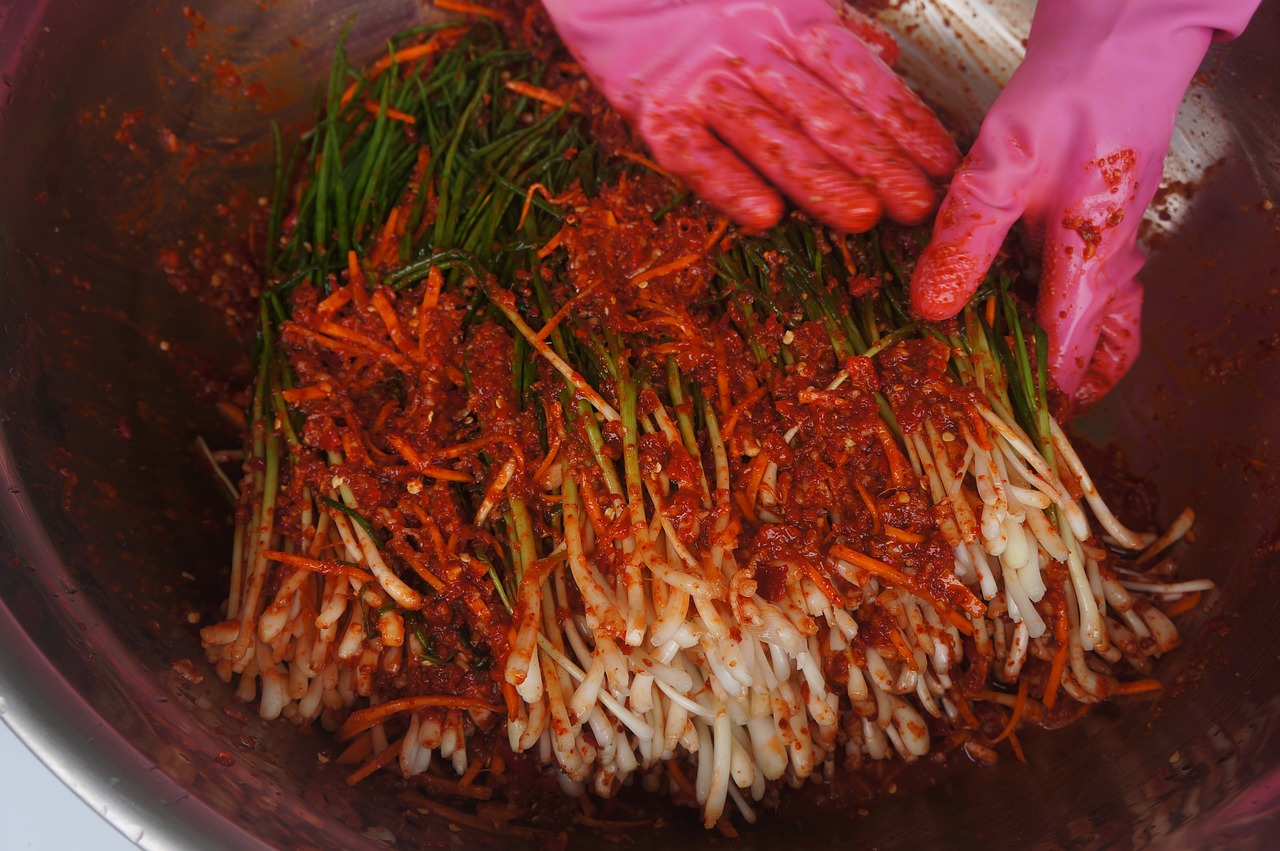 - 마늘과 생강을 곱게 다져 고춧가루, 설탕, 멸치액젓과 섞습니다.